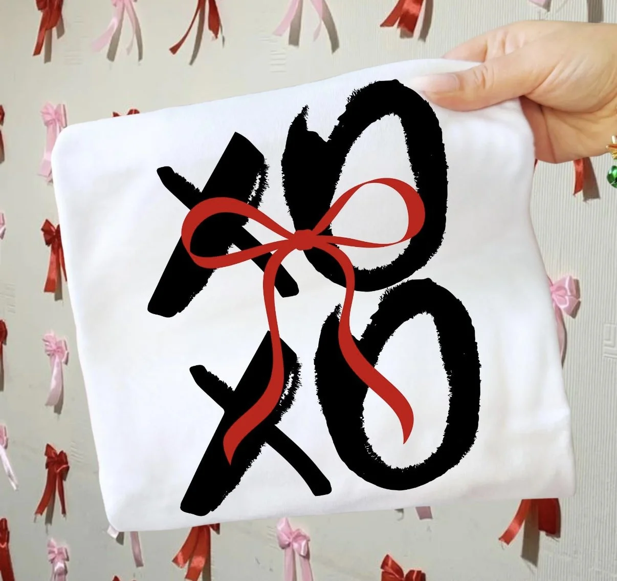 • Trend-Forward Design: Features a large, hand-painted style "XO" motif tied with a delicate red coquette bow.