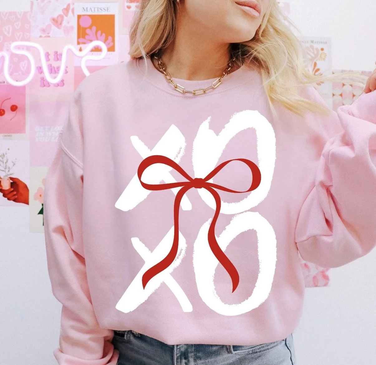 We believe your favorite holiday gear should last well beyond February 14th. Each sweatshirt is custom-made using high-quality Direct-to-Film (DTF) technology. This ensures the oversized "XO" and intricate red bow are incredibly vibrant, soft to the touch, and durable enough to withstand every wash without cracking or peeling.