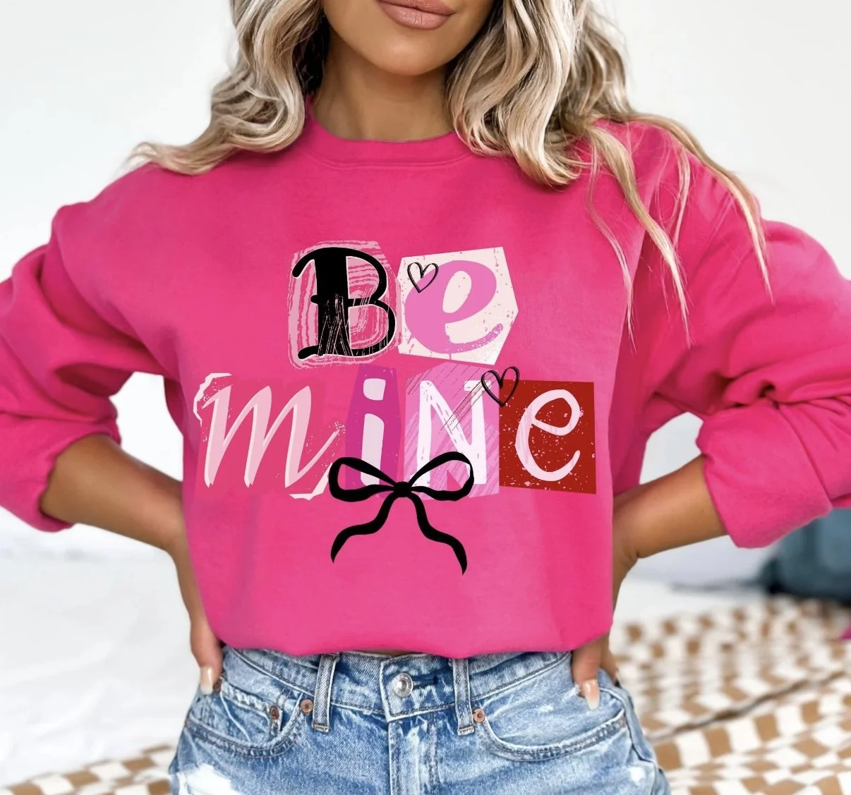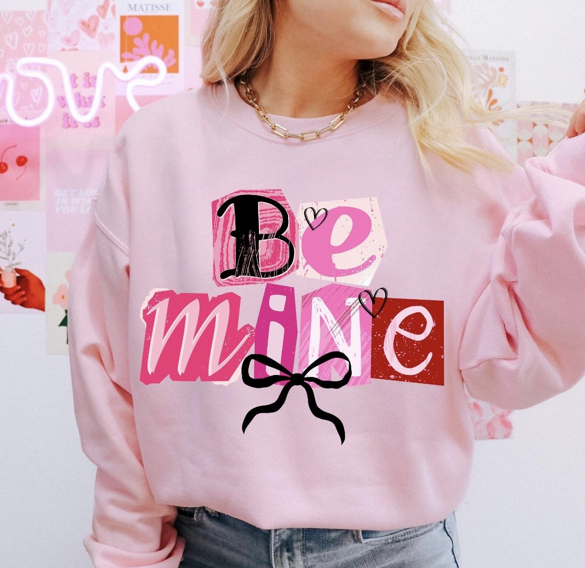 Retro Collage Be Mine Valentine’s Crewneck - Edgy Coquette Aesthetic Holiday Pullover