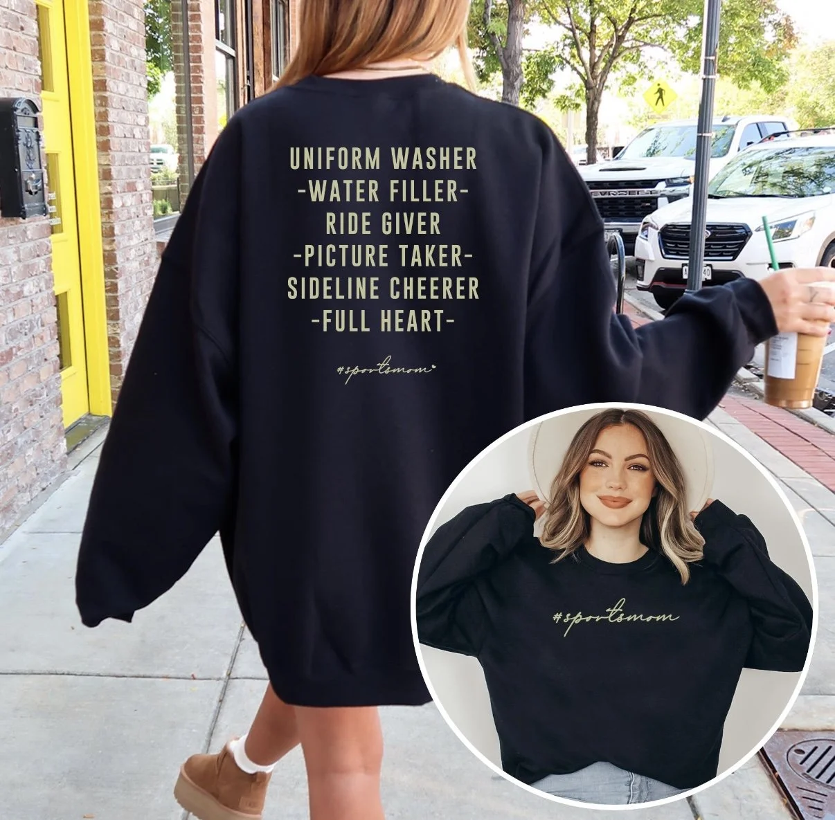 Celebrate the relentless heart of a sports mom with our #SportsMom Crewneck Sweatshirt. This double-sided design honors everything you do—from uniform washer to sideline cheerer. Featuring a chic minimalist #sportsmom script on the front and a meaningful checklist on the back, this sweatshirt is the perfect way to stay cozy while supporting your favorite athletes.