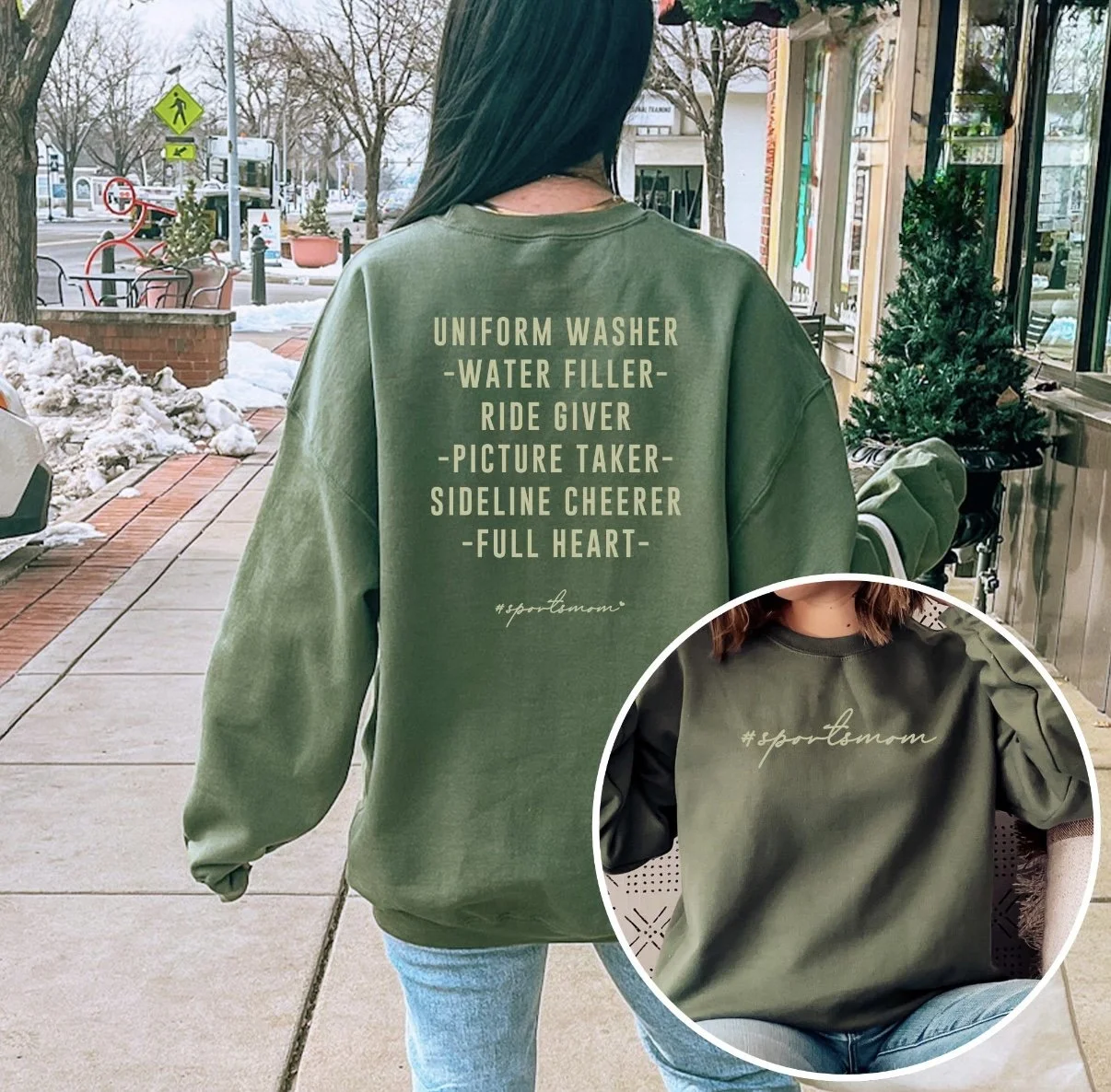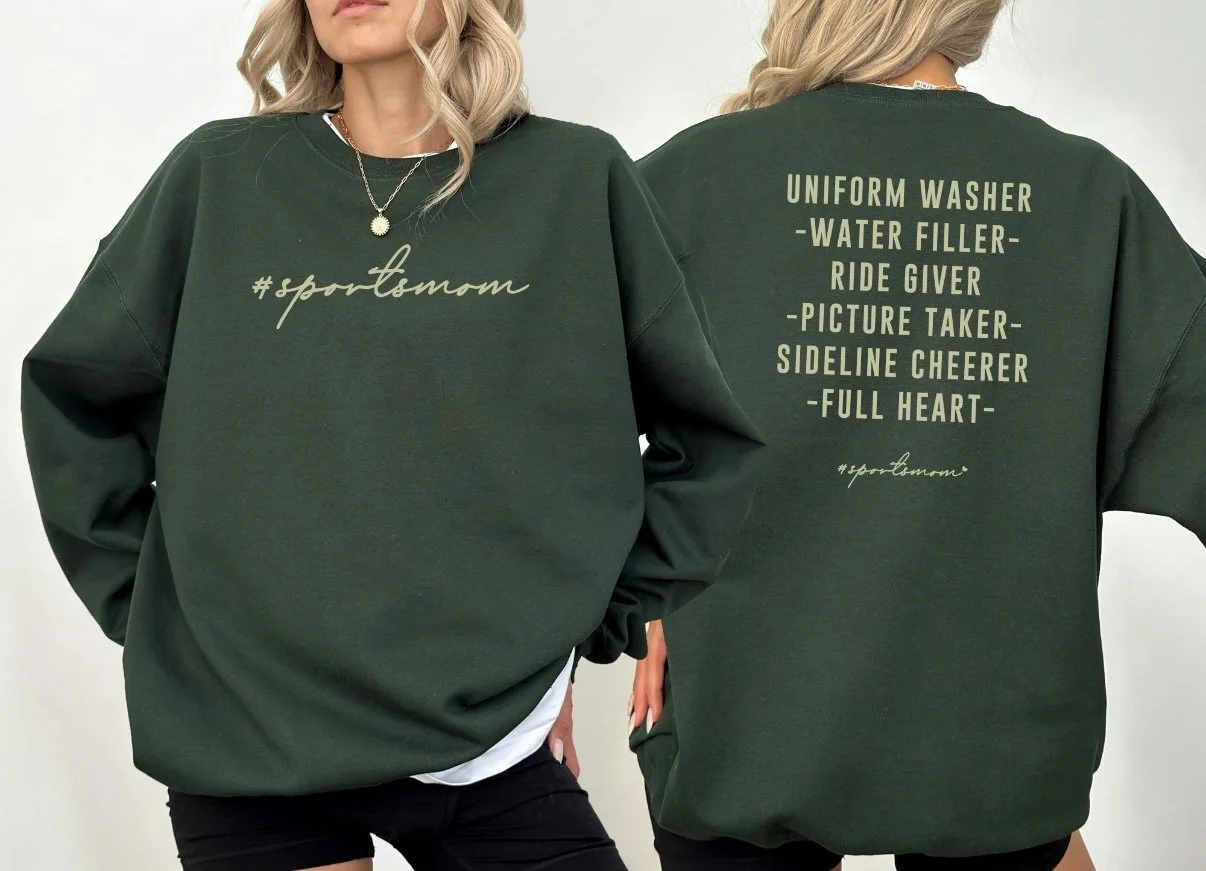 We know a sports mom's schedule is demanding, so we make apparel that can keep up. Every sweatshirt is custom-made using high-quality Direct-to-Film (DTF) printing. This ensures the text on both sides is crisp, vibrant, and incredibly durable, so it won’t crack or peel even after a season’s worth of laundry cycles.