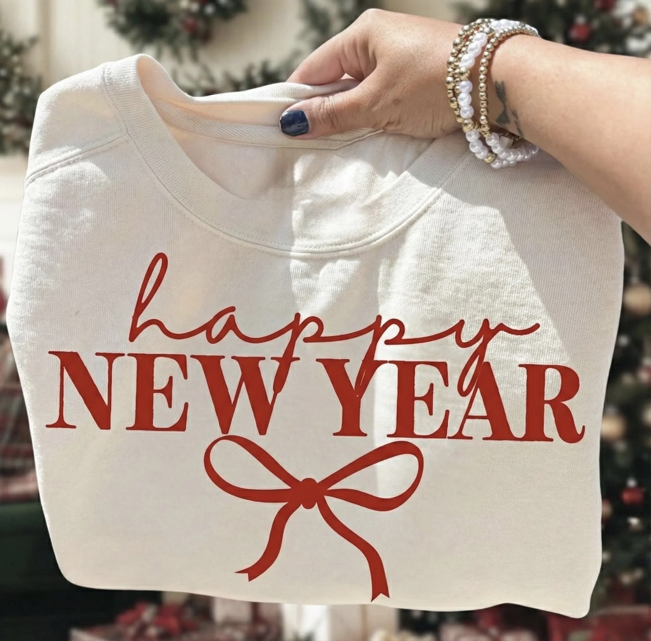 Shop › Happy New Year Crewneck | New Years Eve Bow Pullover Sweatshirt Image 1 of 8 Image 2 of 8 Image 3 of 8 Image 4 of 8 Image 5 of 8 Image 6 of 8 Image 7 of 8 Image 8 of 8 Happy New Year Crewneck | New Years Eve Bow Pullover Sweatshirt from $30.00 7-14 day production timeRead our full shipping and product policy Size: Select Size Youth XS Youth S Youth M Youth L Youth XL Adult S Adult M Adult L Adult XL Adult 2XL Adult 3XL Adult 4XL Color: Select Color White Red Safety Pink Sand Sport Gray Navy Blue Forest Green Dark Heather Light Pink Heliconia Maroon Royal Blue Quantity: Add To Cart Added! 7-14 day production timeRead our full shipping and product policy