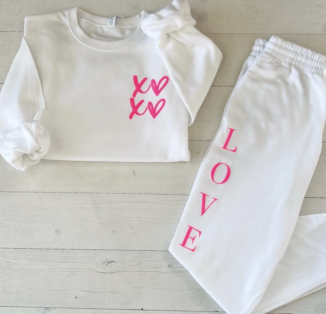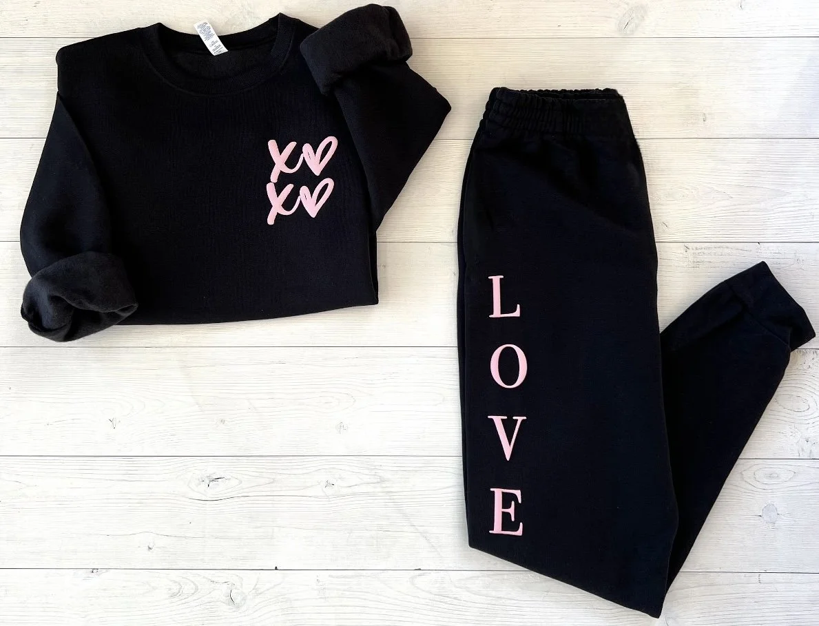 Valentine’s XOXO Hearts Lounge Set - Custom Love Script Crewneck and Matching Joggers Sweatsuit